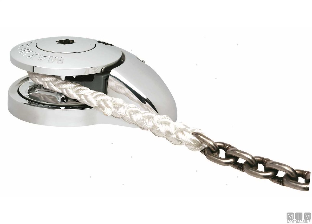 Verricello salpa ancora cima/catena Maxwell con organi di trazione in Bronzo e Acciaio Inox. Il nuovo barbotin cima/catena Maxwell Wave Design permette l'uso combinato della cima e della catena senza intoppi all'interno della ruota durante il recupero. Motore e riduttore sono in linea per una installazione rapida e semplice. Completo di manovella d'emergenza manuale e solenoide a doppia direzione.