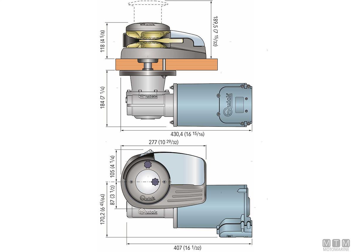 Verricello salpa ancora cima/catena Quick con organi di trazione in Bronzo e Acciaio Inox. Completo di sensore contametri e sistema manuale di caduta libera della catena. Sistema di recupero manuale d’emergenza e dispositivo tendicima. Testa e base in Acciaio Inox e Alluminio Anodizzato in ossido duro. Motore stagno IP67.Completo di control box e maniglia.
