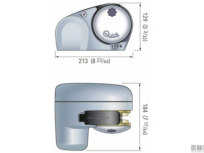 Verricello salpa ancora Quick On-Deck cima/catena su un unico barbotin. Carter in Composito rinforzato, elementi di trazione in Bronzo e Acciaio Inox. Completo di sensore contametri, sistema manuale di caduta libera della catena e dispositivo tendicima. Motore stagno IP66. Completo di control box e maniglia.