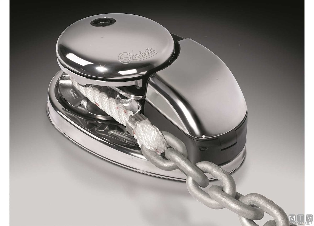 Verricello salpa ancora cima/catena Quick con organi di trazione in Bronzo e Acciaio Inox. Completo di sensore contametri e sistema manuale di caduta libera della catena. Sistema di recupero manuale d’emergenza e dispositivo tendicima. Testa e base in Acciaio Inox (Inner Composite Structure). Motore stagno IP67. Completo di control box e maniglia.