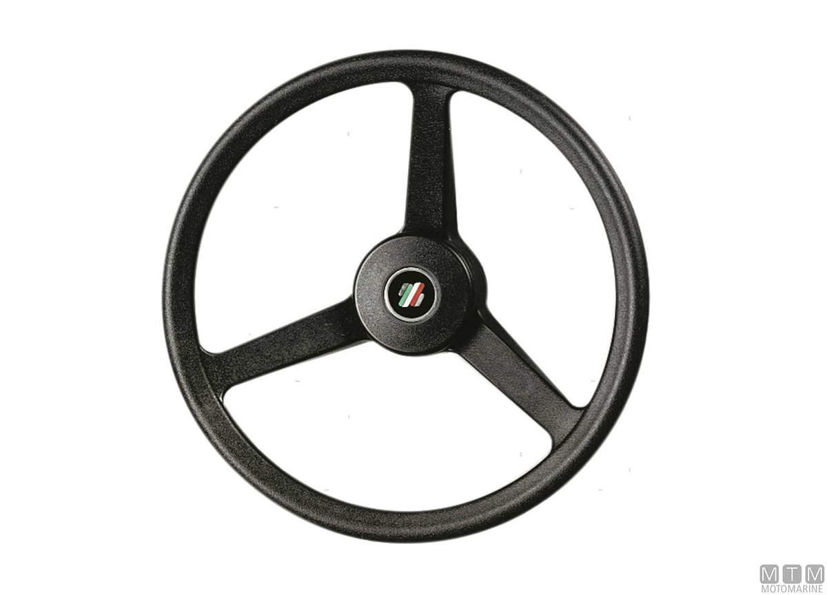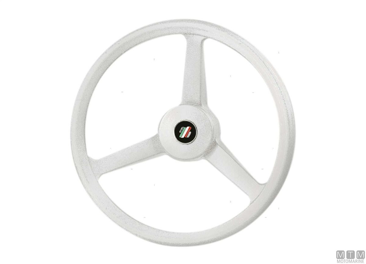 Volante in materiale termoplastico composito antiurto. Certificato CE-ISO23411 e conforme ABYC. Completo di tappo centrale e mozzo con cono standard da 3/4".