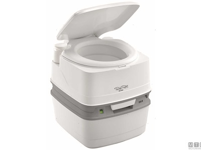 E' una toilet portatile formato famiglia con un serbatoio di scarico di grande portata e una altezza naturale della tazza. Il kit di fissaggio a pavimento viene fornito a parte come optional.