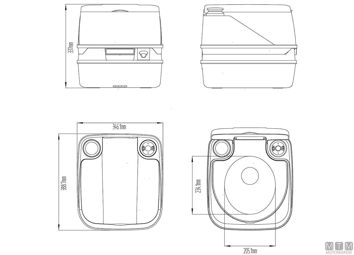 Toilet Porta Potty portatile compatta e resistente ideale per piccoli natanti e per qualsiasi attivitĂ nautica dove non ci sono servizi igienici. Completa con seduta ergonomica e confortevole, sistema di risciacquo con spruzzo a vortice, serbatoio acque nere sigillato anti-odore con indicatore livello, coperchio con maniglia e raccordo di scarico girevole.