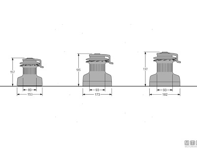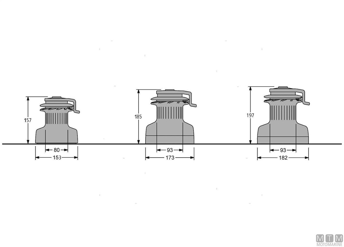 Winch Self Tailing XT a due velocita' ridotte. Con il primo rapporto, pur realizzando notevoli potenze, si ha un recupero veloce; all’aumentare dello sforzo, cambiando il verso di rotazione della manovella, si inserisce automaticamente la seconda velocità che realizza la massima potenza. Per scotte da 6<>14 mm.