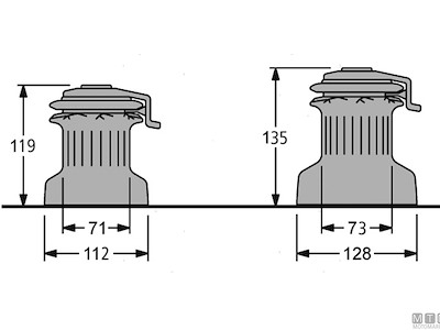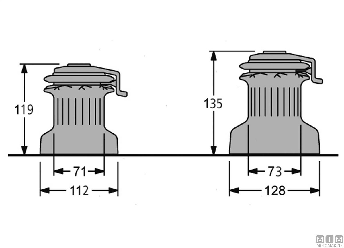 Winch Self Tailing XT compatti a velocità ridotta lenta e potente. Nell'altro verso la manovella gira libera. Per scotte da 6<>10 mm.